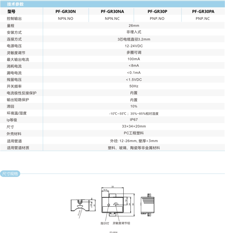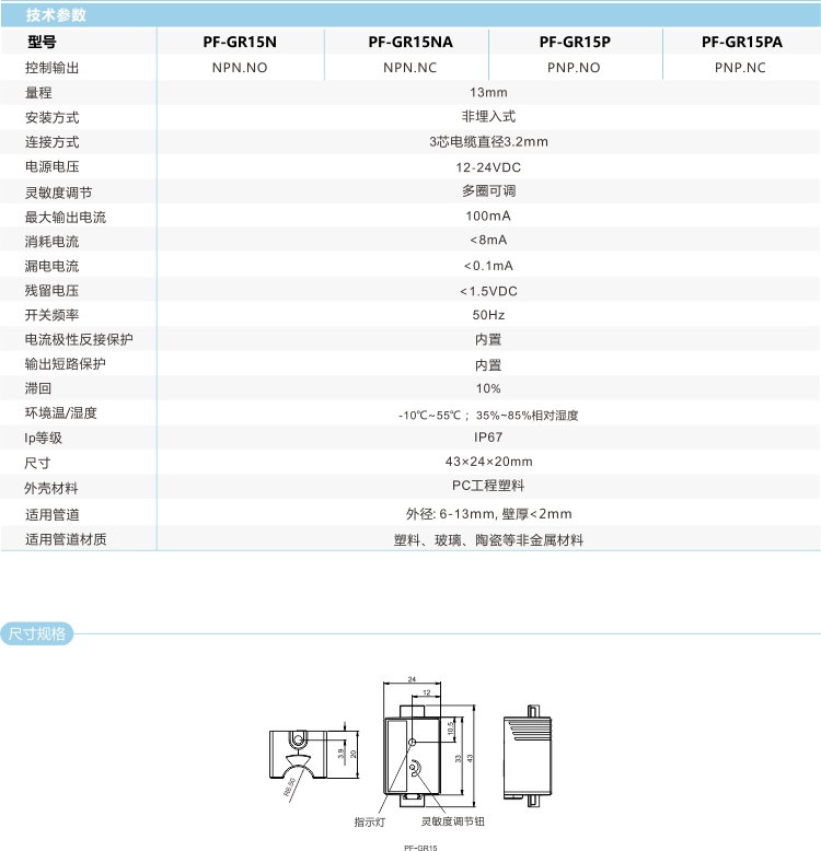 電容式液位傳感器是根據(jù)靜電容原理設計,所以它可以檢測非透明管道里面的液面情況,如橡膠管、鐵氟龍管、PVC管、陶瓷管等。