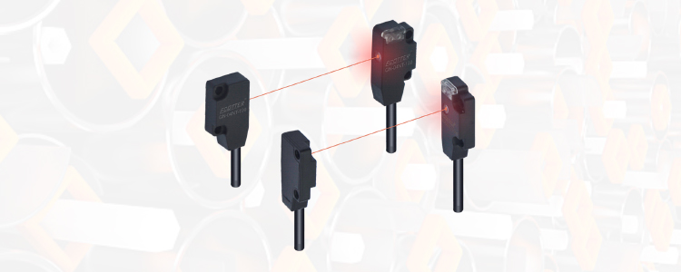 ECOTTER 超薄型對射光電開關(guān) 上電后發(fā)出紅光進(jìn)行感應(yīng),對齊安裝后,被檢測物擋斷發(fā)射和接收端之間的光線,則判斷感應(yīng)到物料。