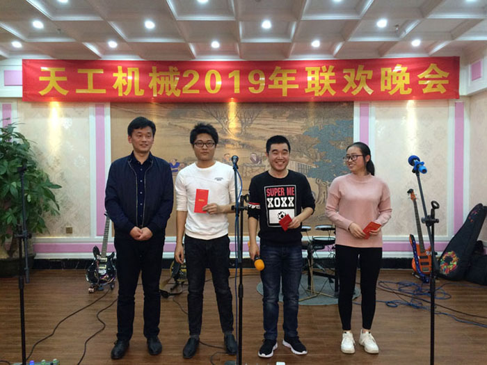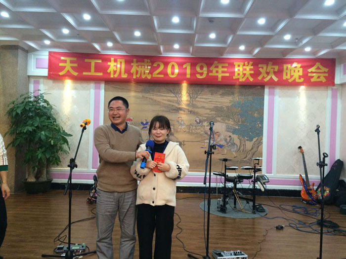 最后,我們?yōu)楫?dāng)晚的幸運兒表示祝賀,為優(yōu)秀員工表示崇高的敬意。2018已經(jīng)結(jié)束,2019才剛剛開始,讓我們天工的家人們一起乘風(fēng)破浪、披荊斬棘,把2019裝飾成一個更美好的明天。天工機械加油,2019加油!