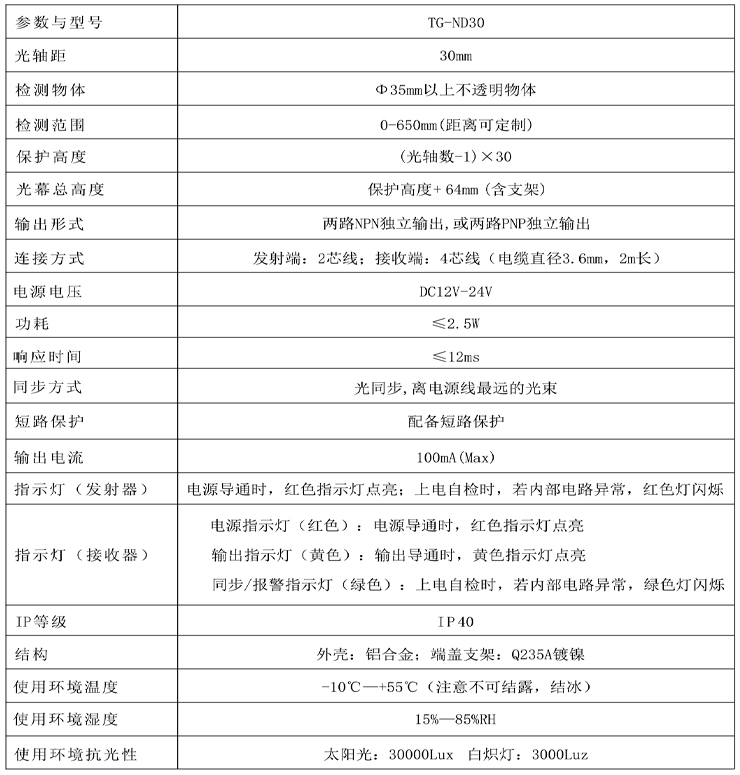首頁 > 產(chǎn)品中心 >>傳 感 器 >> 安全光幕 >> 四級(jí)安全光幕超薄型TG-ND-30系列