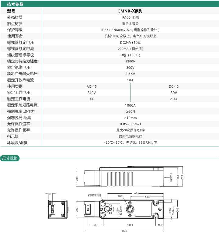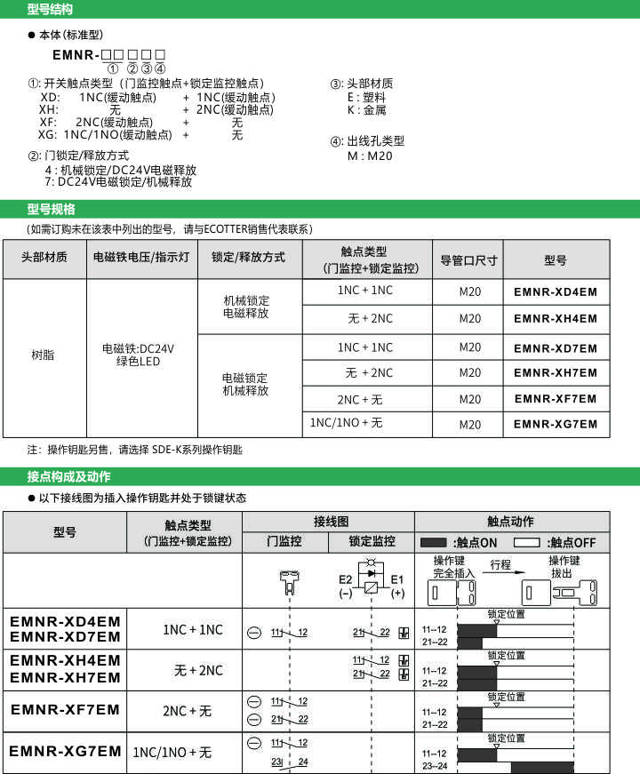 安全門開關(guān) 電磁式 兩組觸點 EMNR-X 系列