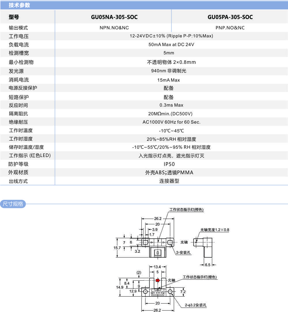 槽型光電開關(guān)GU05-305-SOC
